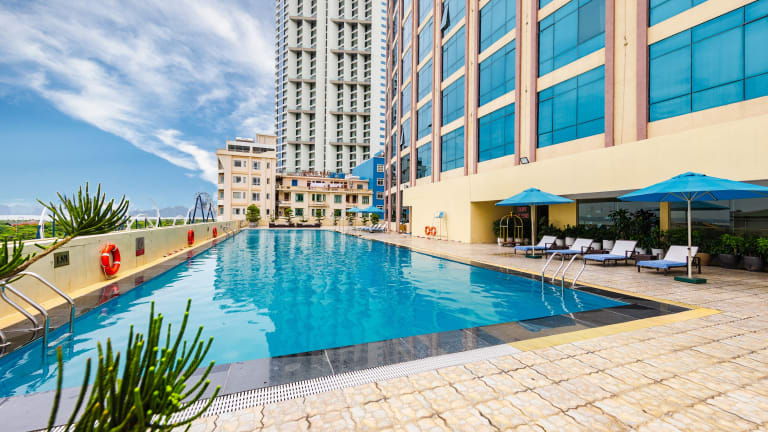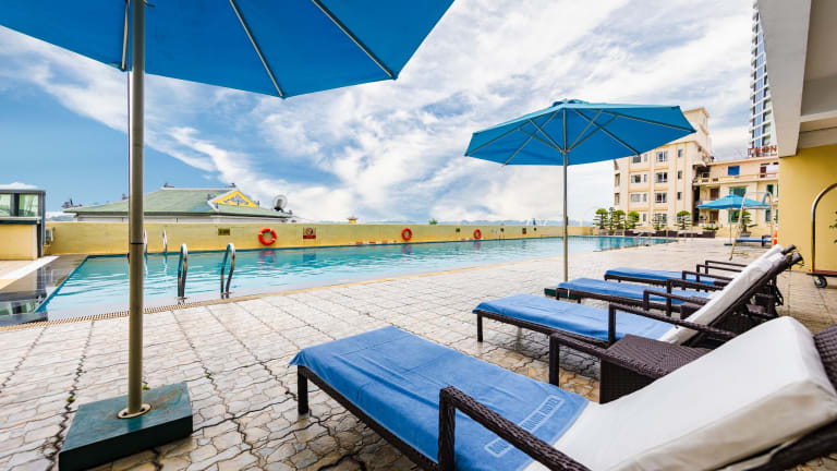 Das Muong Thanh Luxury Quang Ninh Hotel befindet sich in Ha Long City, nur 800 Meter vom Bai Chay Strand entfernt. Die Umgebung umfasst den Ha Long Nachtmarkt und das Marine Plaza, welche beide 4 Kilometer entfernt sind. Zu den weiteren Attraktionen in der Nähe gehören der Big C Hypermarkt (6 km), der Bai Tho Berg (10 km) und die Tuan Chau Insel (15 km). Der Flughafen Cat Bi International ist 70 Kilometer entfernt.