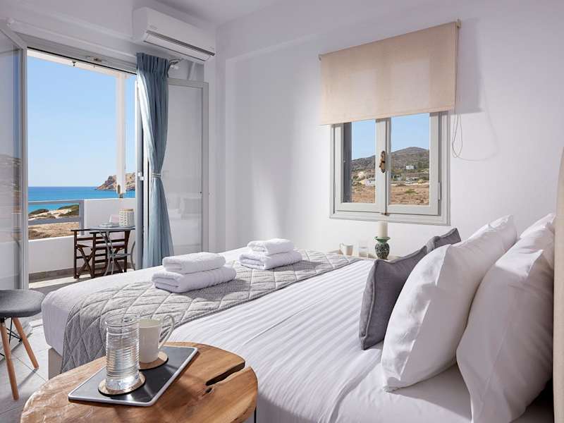 Die Zimmer im Muses Rooms Milos sind mit einem Kleiderschrank, einem Flachbild-TV und einem eigenen Bad ausgestattet. Alle Unterkünfte verfügen über eine Klimaanlage und sind teilweise mit einem Balkon oder einer Terrasse mit Meerblick und Kühlschrank ausgestattet.
