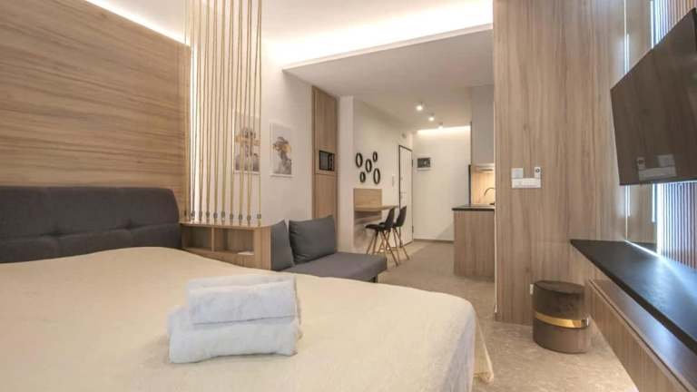 Das Hotel bietet 93 Zimmer, darunter Einzel- und Doppelzimmer sowie Suiten, die auf 7 Etagen verteilt sind. Die Zimmer sind komfortabel eingerichtet und verfügen über Annehmlichkeiten wie Klimaanlage, Heizung, Safe, Minibar und kostenloses WLAN. Ein Balkon oder eine Terrasse gehört ebenfalls zur Ausstattung der meisten Zimmer.