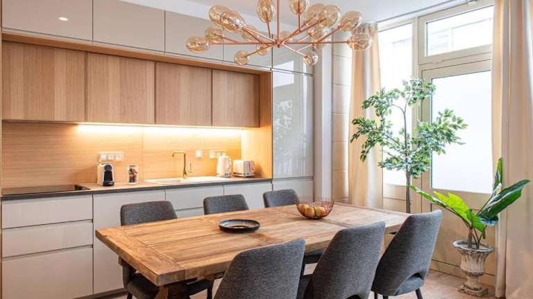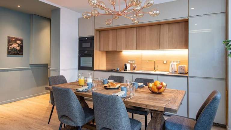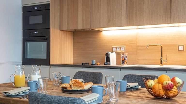 Die Ferienwohnung besteht aus 3 Schlafzimmern, einem Wohnzimmer und einer voll ausgestatteten Küche mit Kühlschrank und Wasserkocher. Zudem sind 2 Badezimmer mit Badewanne und Haartrockner vorhanden. Handtücher und Bettwäsche werden bereitgestellt.