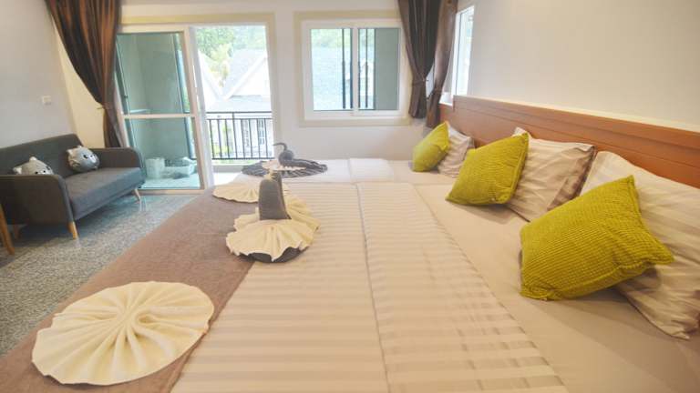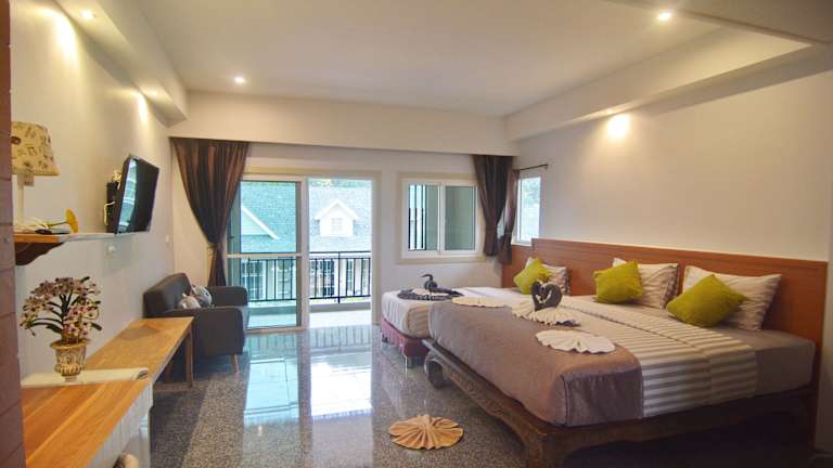 Das My Home Lantawadee Resort verfügt über klimatisierte Zimmer, die mit einem Kleiderschrank, einem Wasserkocher, einem Kühlschrank, einem Safe, einem Flachbild-TV, einem Balkon sowie einem eigenen Badezimmer mit einer Dusche ausgestattet sind. Einige Zimmer bieten einen Blick auf die Berge, und alle sind mit einer Veranda oder einem Patio versehen.