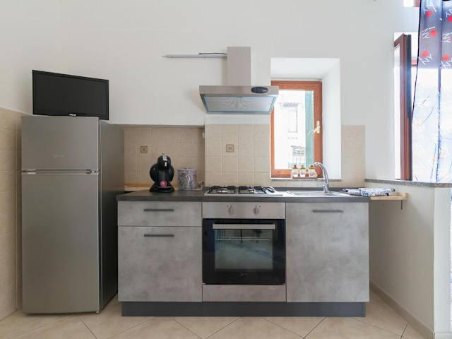 Die Ferienwohnung besteht aus einem Schlafzimmer, einem Wohnzimmer und einer voll ausgestatteten Küche mit Kühlschrank und Kaffeemaschine. Ein Badezimmer mit Bidet und Haartrockner ist ebenfalls vorhanden. Handtücher und Bettwäsche werden bereitgestellt.