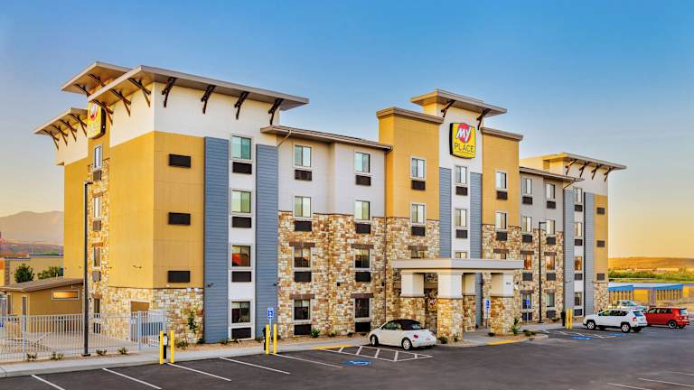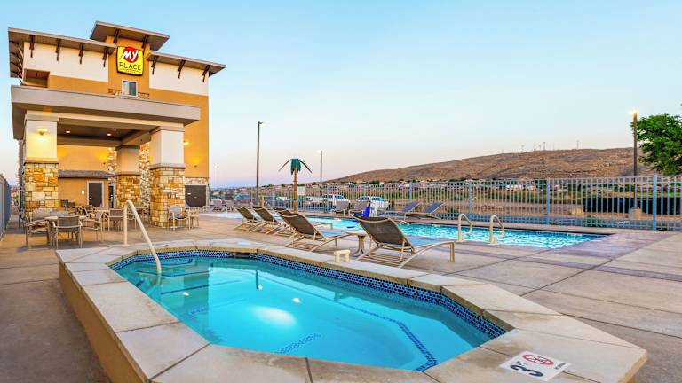 My Place Hotel - St. George, UT ist ein modernes Hotel mit einer Vielzahl von Annehmlichkeiten, darunter ein Aussenpool, eine Sonnenterrasse, ein Whirlpool sowie Grillmöglichkeiten. Die Unterkunft bietet auch eine rund um die Uhr besetzte Rezeption, ein Businesscenter und einen Waschsalon.