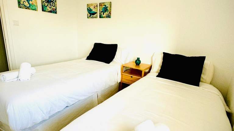 Die Ferienwohnung hat 3 Schlafzimmer, ein Wohnzimmer mit Flachbild-TV, sowie eine gut ausgestattete Küche mit Kühlschrank und Geschirrspüler. Es gibt 1 Badezimmer mit Dusche. Handtücher und Bettwäsche werden bereitgestellt.