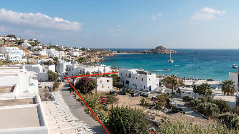 Das Myconian Ambassador Relais & Chateaux liegt direkt am beliebten Strand von Platis Gialos und bietet seinen Gästen eine idyllische Lage mit einem beeindruckenden Blick auf das Meer. Der Strand ist nur wenige Schritte entfernt und lädt zum Entspannen und Sonnenbaden ein. In der Nähe des Hotels gibt es auch eine Auswahl an authentischen Tavernen, in denen die Gäste lokale Köstlichkeiten genießen können. Die malerische Hauptstadt Mykonos-Stadt ist nur etwa 4 km entfernt und bietet zahlreiche Einkaufs- und Unterhaltungsmöglichkeiten.