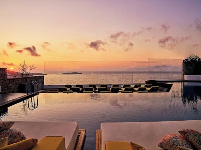 Das Myconian Korali Relais & Chateaux Hotel bietet ein luxuriöses Ambiente mit exquisitem Design und zahlreichen Annehmlichkeiten. Die Unterkunft umfasst zwei Gebäude mit insgesamt 100 Zimmern und eine vielseitige Ausstattung, darunter ein Wellnessbereich und verschiedene gastronomische Angebote. Modernes Interieur gepaart mit traditionellen Elementen schafft ein heimeliges Umfeld.