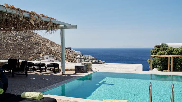 Das Myconian Villa Collection stellt ein romantisches Refugium der Luxusklasse dar und bietet eine erstklassige Auswahl an Villen, die mit modernster Ausstattung sowie privaten Pools und Whirlpools ausgestattet sind. Die Unterkünfte sind in einem stilvollen, minimalistischen Kykladenstil eingerichtet und bieten Panoramablicke auf das Ägäische Meer.