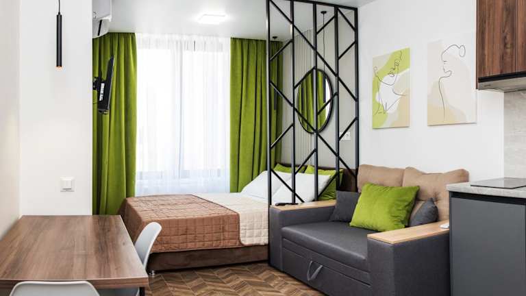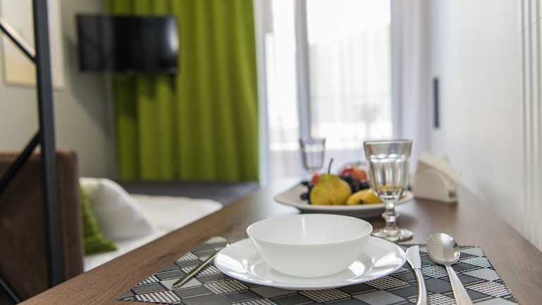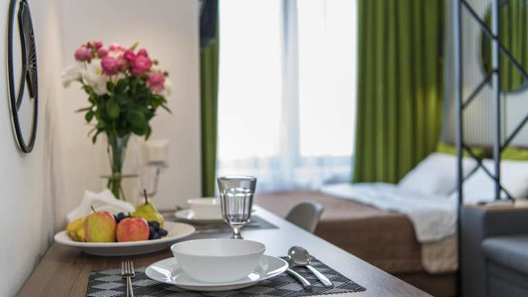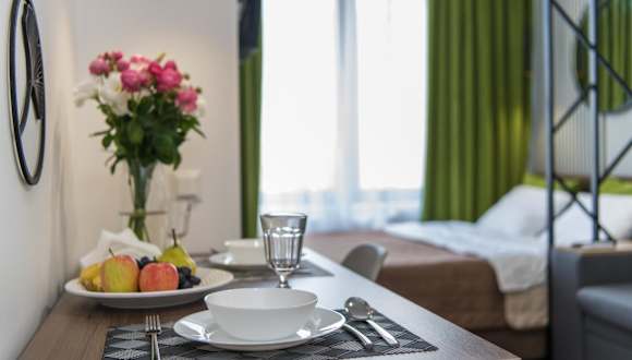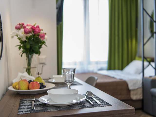 Die Apartments sind klimatisiert und verfügen über eine voll ausgestattete Küche mit Essbereich. Zudem sind sie mit einem Flachbild-TV, einem eigenen Badezimmer mit Badewanne, Haartrockner und Hausschuhen ausgestattet. Die Küche beinhaltet einen Kühlschrank, eine Mikrowelle, eine Herdplatte, eine Kaffeemaschine und einen Wasserkocher. Schallisolierte Zimmer sind ebenfalls vorhanden.