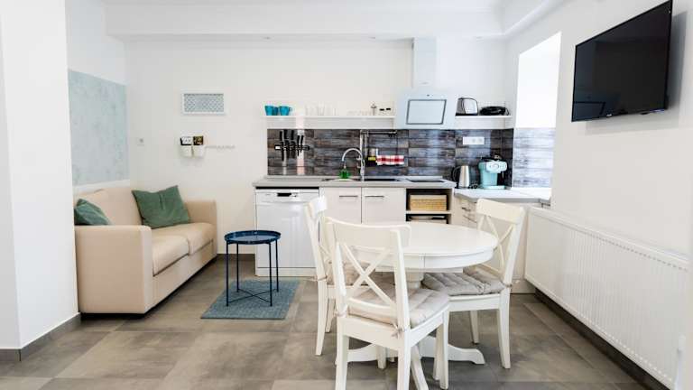 In jeder Wohneinheit gibt es eine voll ausgestattete Küche mit Esstisch, einen Flachbild-TV mit Kabelkanälen und ein eigenes Badezimmer mit Badewanne oder Dusche, Haartrockner und Hausschuhen. Des Weiteren sind ein Kühlschrank, Geschirrspüler, Mikrowelle, Kaffeemaschine und Wasserkocher vorhanden. Die Zimmer sind schallisoliert und die Unterkunft sorgt für die Reinigung und Desinfektion nach den Richtlinien der örtlichen Behörden.