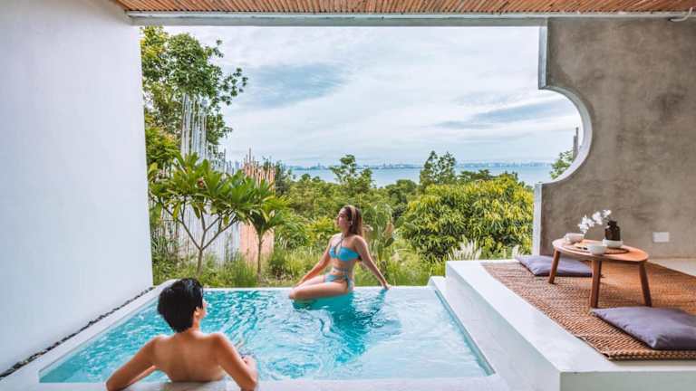Das Myth Koh Larn resort bar and bistro bietet eine helle und moderne Atmosphäre mit einer Terrasse und Meerblick. Die Unterkunft verfügt über klimatisierte Zimmer mit kostenlosem Wifi und einem eigenen Badezimmer. Ein Zimmerservice und ein Whirlpool gehören ebenfalls zur Ausstattung.