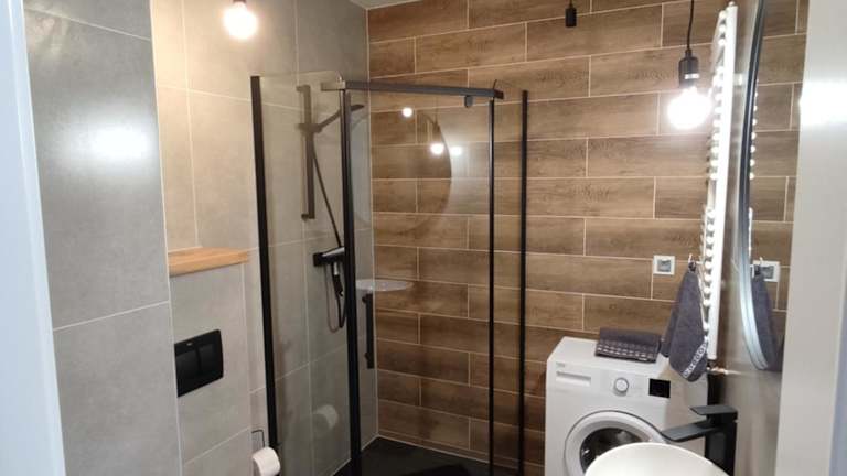Die Ferienwohnung umfasst 1 Schlafzimmer, ein Wohnzimmer sowie eine voll ausgestattete Küche mit Kühlschrank und Wasserkocher. Das Badezimmer ist mit einer Dusche und Hausschuhen ausgestattet. Es werden sowohl Handtücher als auch Bettwäsche bereitgestellt. Die Ferienwohnung verfügt über Klimaanlage und bietet Nichtraucherzimmer.