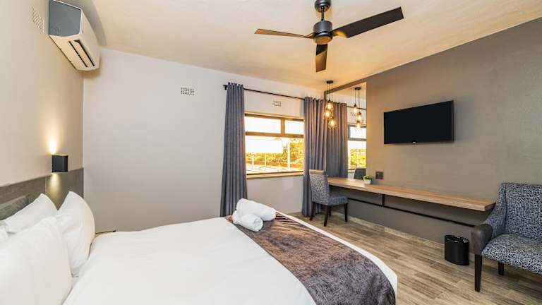 Die Zimmer im N1 Hotel Rotten Row Harare sind ausgestattet mit einem Schreibtisch, einem Flachbild-TV, einem eigenen Badezimmer, Bettwäsche und Handtüchern. Die Unterkunft bietet zudem einen Aufzug, eine Gepäckaufbewahrung sowie Innenräume, die Nichtraucherzonen sind.