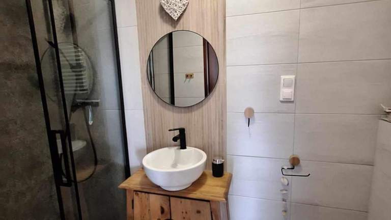 Die Wohneinheiten sind komfortabel gestaltete Zimmer mit einem eigenen Badezimmer, das über eine Dusche und einen Haartrockner verfügt. Einige Zimmer bieten einen Balkon oder eine Veranda mit einem schönen Blick auf die Berge. Eine voll ausgestattete Küche ist ebenfalls vorhanden, inklusive Kühlschrank und Geschirrspüler.