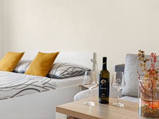 Die Ferienwohnung umfasst zwei Schlafzimmer sowie eine voll ausgestattete Küche mit Kühlschrank, Geschirrspüler und Wasserkocher. Handtücher und Bettwäsche stehen bereit. Die Unterkunft bietet WLAN in allen Bereichen.