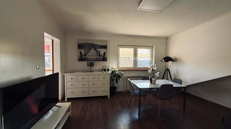 Die Ferienwohnung besteht aus zwei Schlafzimmern, einem Wohnzimmer und einer voll ausgestatteten Küche mit Kühlschrank und Kaffeemaschine. Zudem verfügt sie über ein Badezimmer mit Dusche und Haartrockner. Handtücher und Bettwäsche werden bereitgestellt.