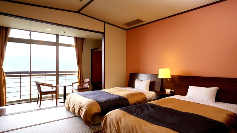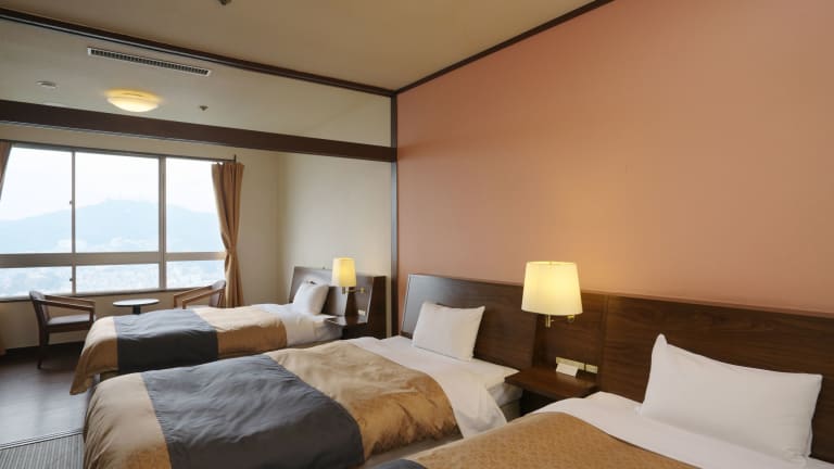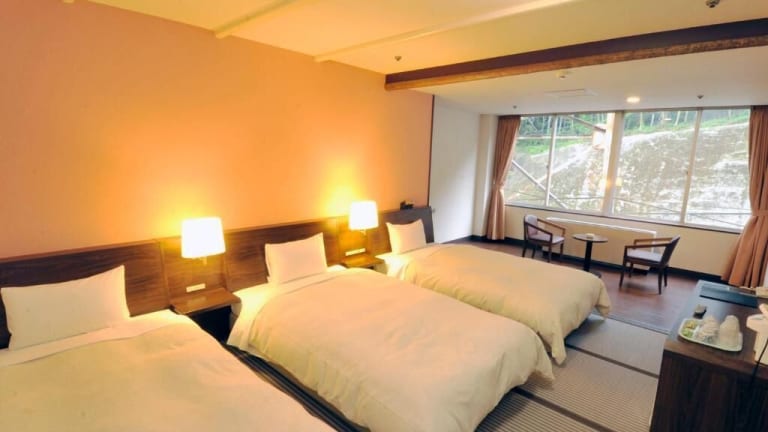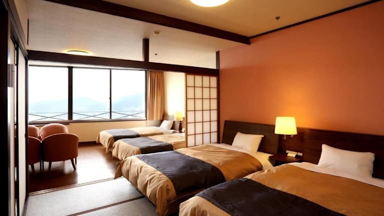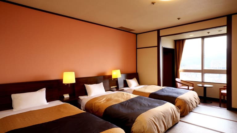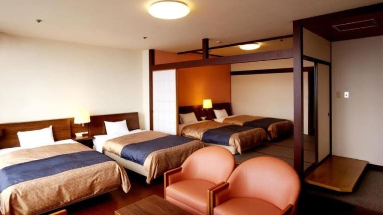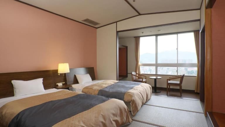Die Zimmer sind mit tatami Fussboden und westlichen Betten ausgestattet. Zur Einrichtung gehören Klimaanlage, Heizung, Kühlschrank, TV mit Kabelanschluss sowie ein Safe. Die Badezimmer sind mit Dusche und Badewanne ausgestattet. Das Hotel bietet sowohl Nichtraucher-, Raucher- als auch Familienzimmer an und verfügt über rollstuhlgerechte Zimmer.