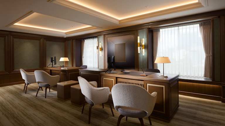 Das Hotel bietet fünf Restaurants, ein Café und eine Bar. Ein reichhaltiges Frühstücksbuffet wird serviert. Die gastronomischen Einrichtungen umfassen internationale, japanische und chinesische Küche. Die Brasserie & Café Le Sud bietet frische Gipfeli und das französische Restaurant Escoffier bietet eine sorgfältige Auswahl von über 200 Weinen.