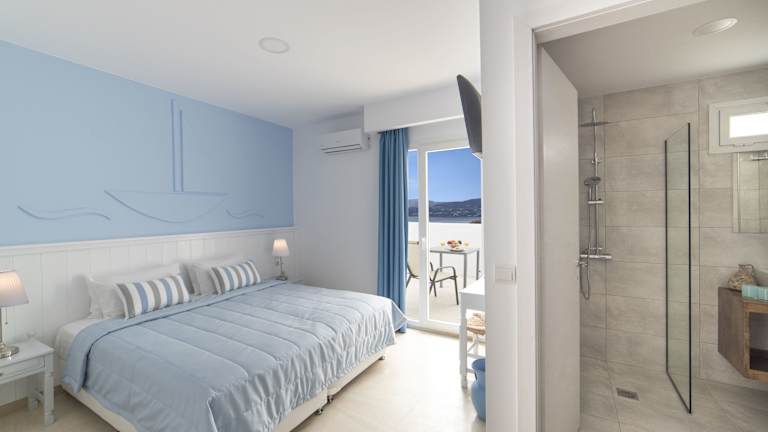 Die Zimmer im Naiades Marina Hotel sind modern und komfortabel eingerichtet. Jedes Zimmer verfügt über einen Balkon, ein eigenes Bad mit Dusche und kostenfreien Pflegeprodukten sowie Annehmlichkeiten wie einen Safe, einen Wasserkocher, einen Kleiderschrank und einen Flachbild-TV. WLAN ist im gesamten Hotel verfügbar.