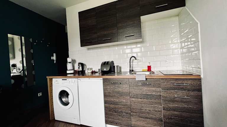 Die Wohneinheiten verfügen über eine voll ausgestattete Küche mit Kühlschrank, Herdplatte, Kaffeemaschine und Wasserkocher, was die Zubereitung von eigenen Mahlzeiten ermöglicht.