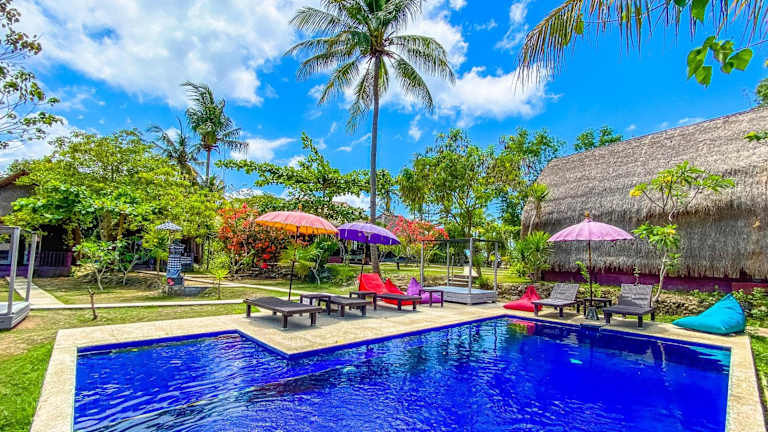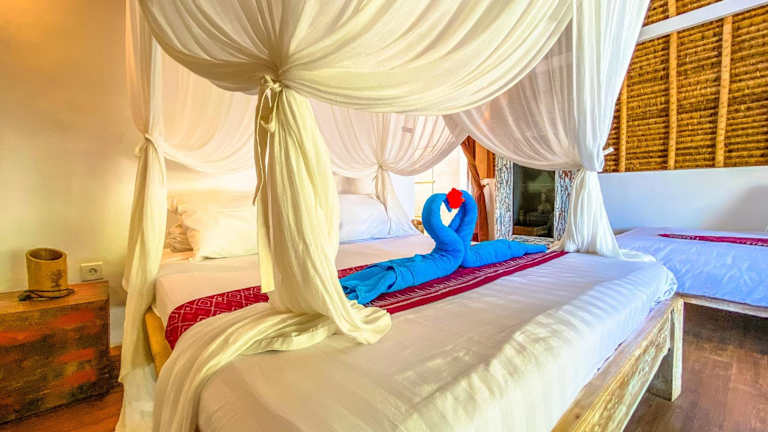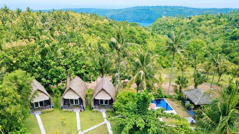 Die Namaste Bungalows befinden sich 1 km entfernt vom Strand Crystal Bay, am Rande einer Klippe. Nach 30 Gehminuten erreicht man den Strand, und die Insel Nusa Penida ist in 30 Minuten mit dem Boot vom Hafen Sanur aus erreichbar. Der internationale Flughafen Ngurah Rai liegt 30 Autominuten entfernt.