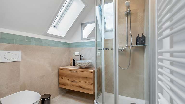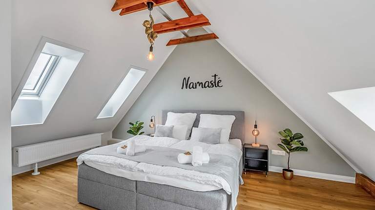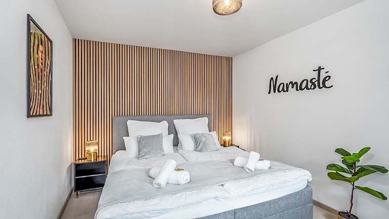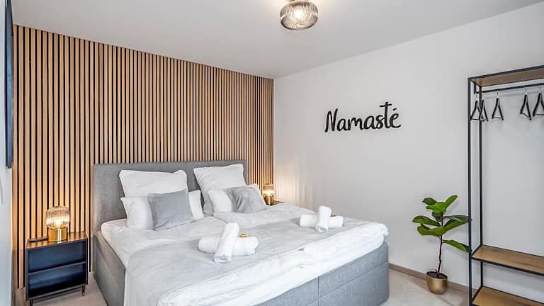 NAMASTÉ Homes - Ferienwohnung mit Dachterrasse bietet eine heimelige Atmosphäre mit einer Veranda und einem Balkon. Zudem steht den Gästen ein kostenloser Privatparkplatz zur Verfügung.