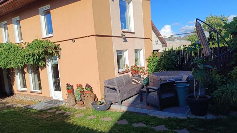 Die Unterkunft Namelis uždarame kieme bietet Übernachtungsmöglichkeiten in einem Garten mit kostenlosem Wifi und einer rund um die Uhr besetzten Rezeption. Diese Ferienwohnung verfügt über einen eigenen Pool und eine Terrasse mit Gartenblick. Es wird eine Nichtraucherunterkunft angeboten, wobei alle öffentlichen und privaten Bereiche Nichtraucherzonen sind.