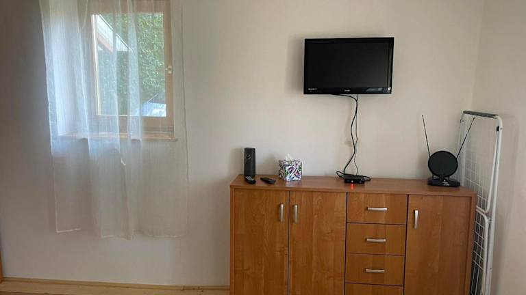 Die Ferienwohnung besteht aus einem Schlafzimmer und einem Badezimmer. Zu den Annehmlichkeiten gehören Bettwäsche, Handtücher, ein Flachbild-TV, ein Essbereich sowie eine voll ausgestattete Küche.