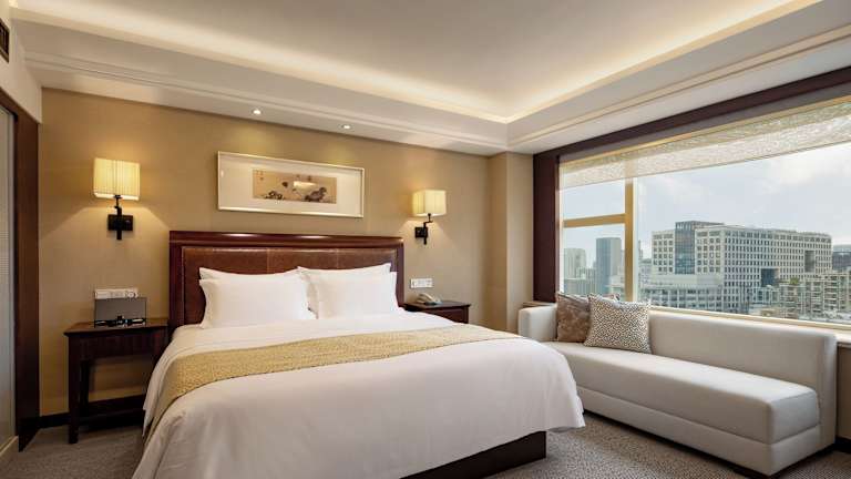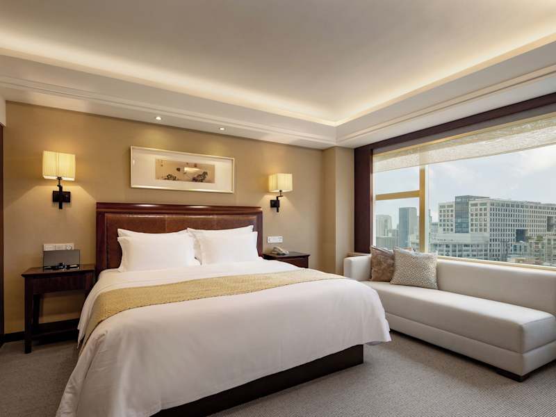 Das Narada Grand Hotel Zhejiang befindet sich am Fusse des Baoshi Hügels in Hangzhou, in unmittelbarer Nähe zum schönen Westsee, den Sie nach einem 15-minütigen Spaziergang erreichen können. Das Einkaufsviertel Wulin Square ist in 8 Autominuten erreichbar, während der Bahnhof etwa 20 Minuten und der Ostbahnhof 25 Minuten entfernt ist. Der internationale Flughafen Xiaoshan ist nach 45 Minuten Taxifahrt zu erreichen.