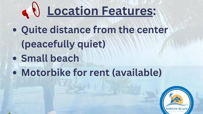 Die Unterkunft Naroth Beach Bungalow hat in Koh Rong gelegen, etwa 800 m von Palm Beach entfernt. Die unmittelbare Umgebung bietet eine ruhige Atmosphäre, ideal für erholsame Ferien am Meer.