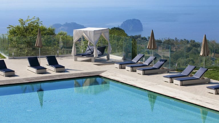 Das Hotel liegt auf einer Anhöhe oberhalb von Sorrent und bietet einen traumhaften Panoramablick auf den Golf von Sorrent und den Golf von Salerno. Der Strand ist ca. 5 km entfernt und ein hoteleigener Shuttleservice steht zur Verfügung. Zur Stadt und zum Touristenzentrum sind es etwa 3 km, und der Flughafen ist ca. 60 km entfernt.