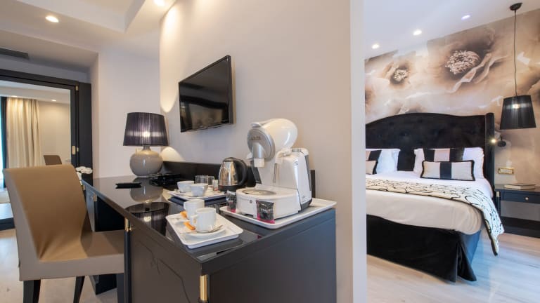 Die klimatisierten Zimmer sind mit einem Balkon oder einer Terrasse ausgestattet und verfügen über Annehmlichkeiten wie einen Safe, eine Minibar, ein Direktwahltelefon und einen Flachbild-TV. Die Bäder sind mit Dusche und Badewanne ausgestattet und bieten einen Haartrockner. WLAN ist in den Zimmern kostenlos verfügbar.
