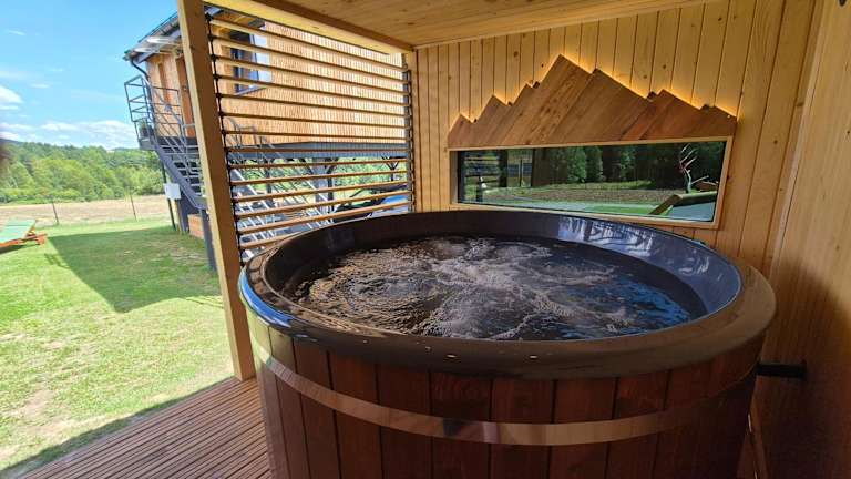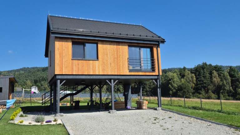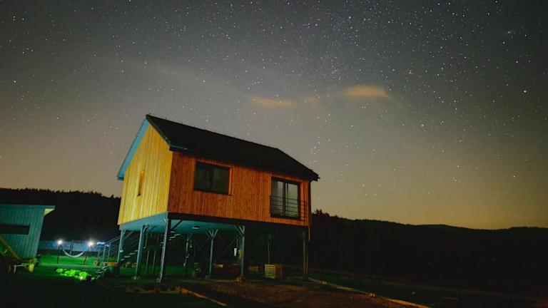 Die Unterkunft Natur House Beskidy - dom z drzewa księżycowego z SAUNĄ i BALIĄ Jacuzzi!! bietet eine heimelige Atmosphäre. Gäste haben Zugang zu einem Garten und können den Bergblick geniessen. Es steht ein Privatparkplatz zur Verfügung, ebenso wie kostenloses Wifi.