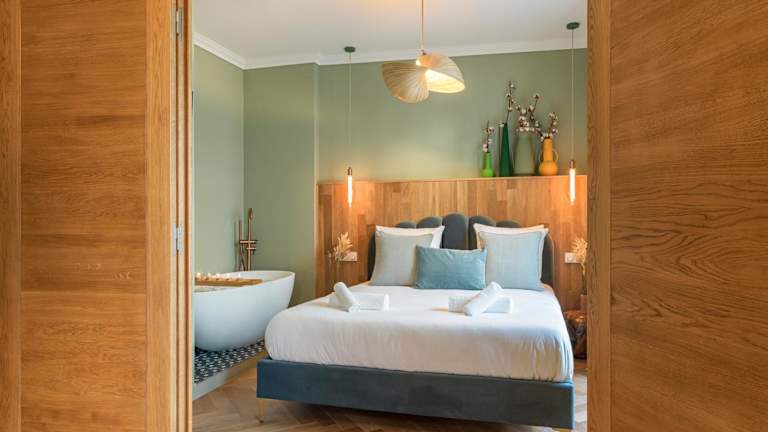 Die Ferienwohnung umfasst 2 Schlafzimmer, ein Wohnzimmer sowie eine voll ausgestattete Küche mit Kühlschrank und Kaffeemaschine. Des Weiteren gibt es 2 Badezimmer, die mit einer Dusche und einem Haartrockner ausgestattet sind. Handtücher und Bettwäsche werden bereitgestellt.