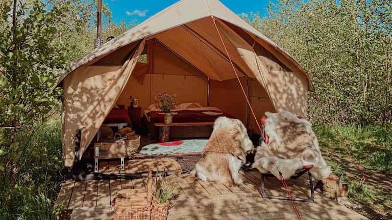 Naturlig på Korsgården Glamping hat eine Terrasse und einem Garten. Die Unterkunft bietet zudem Grillmöglichkeiten und eine gemütliche Gemeinschaftslounge, die ideal zum Entspannen ist. Es sind keine Junggesellenabschiede oder ähnliche Feiern erlaubt, und die Unterkunft ist rauchfrei. Haustiere sind willkommen, eventuell fallen Gebühren an.