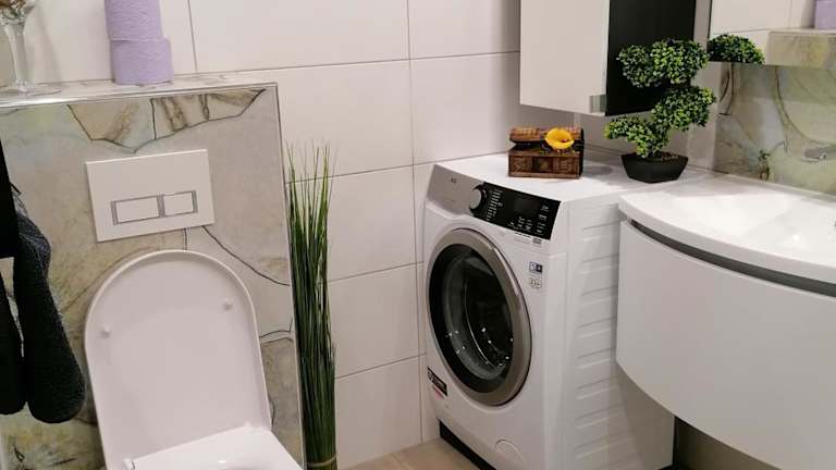 Die Ferienwohnung besteht aus einem Schlafzimmer und einem Wohnzimmer. Sie ist ausgestattet mit einem Flachbild-TV, einem Kühlschrank und einem Geschirrspüler. Im Badezimmer befindet sich eine Dusche. Handtücher und Bettwäsche werden bereitgestellt.
