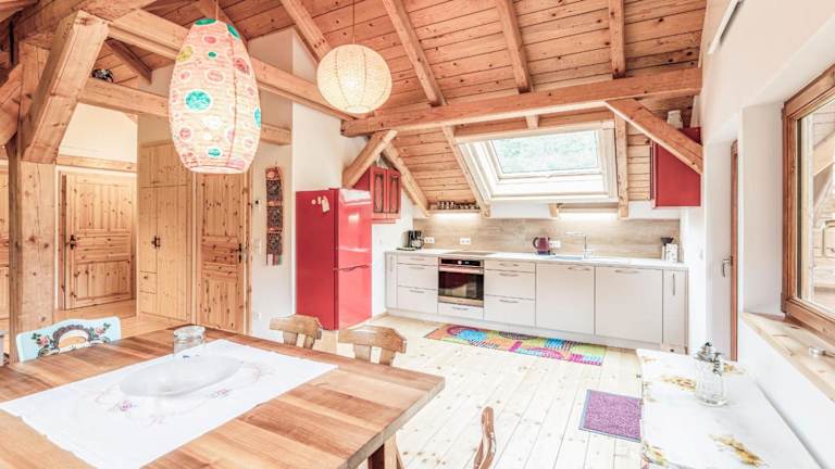 Alle Wohneinheiten verfügen über einen Balkon mit Bergblick, eine Küche mit Kühlschrank und Geschirrspüler sowie ein eigenes Badezimmer mit Dusche. Eine Herdplatte, ein Ofen und ein Wasserkocher sind ebenfalls vorhanden. Die Zimmer sind schallisoliert und bieten Bequemlichkeit für alle Gäste.