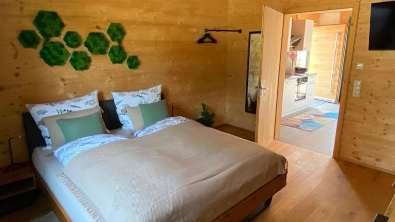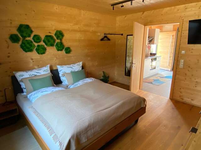 NaturWohnRaum - Urlaub im Holzhaus bietet Unterkünfte in einem Holzhaus mit kostenlosem WLAN und verschiedenen Annehmlichkeiten. Die Unterkunft hat einen Garten und bietet kostenlosen Privatparkplatz sowie eine Terrasse mit Gartenblick. Die Aufnahme ist von einem privaten Gastgeber geführt, der spezifische Richtlinien für Feiern hat.
