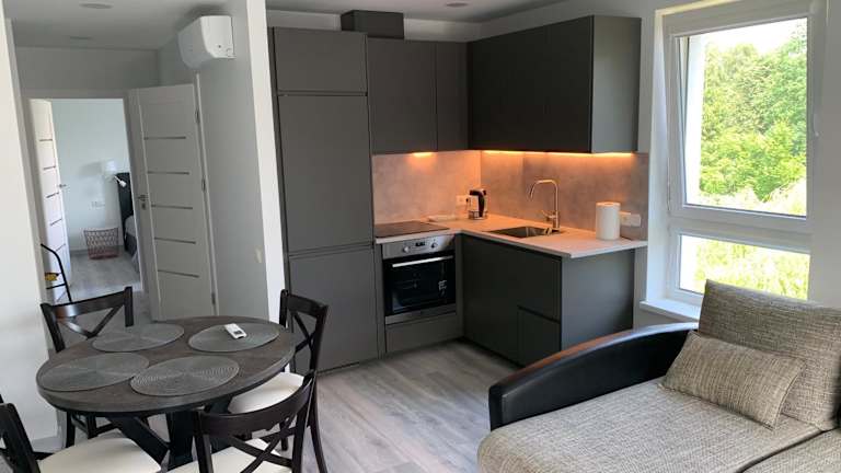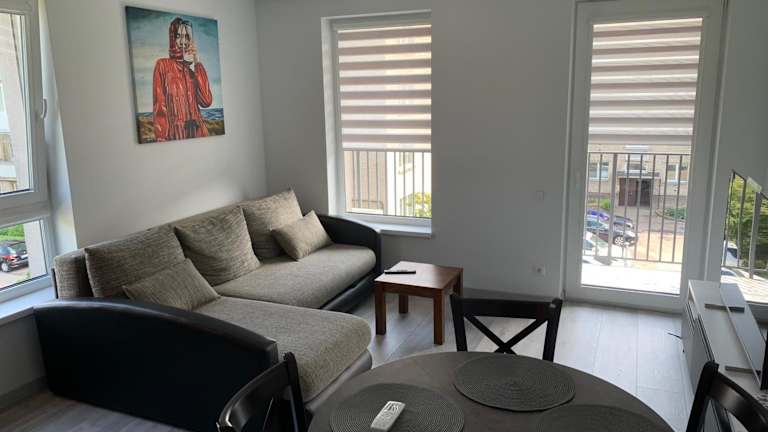 Nauji apartamentai Klaipėdos centre bietet eine klimatisierte Ferienwohnung mit Balkon. Die Unterkunft ist privat geführt und es sind keine Junggesellen-/Junggesellinnenabschiede oder ähnliche Feiern erlaubt. Die Mindestalter für den Check-in sowie für die Gäste beträgt 18 Jahre, Haustiere sind nicht gestattet.