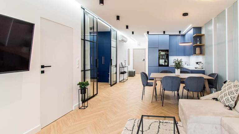 Das klimatisierte Apartment im Masurian Sailor - Nautica Resort verfügt über 2 Schlafzimmer, ein gemütliches Wohnzimmer und eine voll ausgestattete Küchenzeile mit einem Kühlschrank und einer Kaffeemaschine. Das Apartment bietet auch ein Badezimmer mit einer Dusche und einem Haartrockner. Handtücher und Bettwäsche werden gestellt, um Ihren Aufenthalt so angenehm wie möglich zu gestalten.