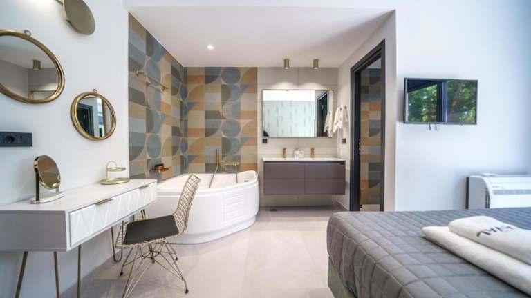 Die Unterkunft ist klimatisiert und besteht aus 6 Schlafzimmern, einem Wohnzimmer und einer voll ausgestatteten Küche, die mit einem Kühlschrank und einer Kaffeemaschine ausgestattet ist. Es gibt 7 Badezimmer, die mit einer Dusche und einem Whirlpool ausgestattet sind. Handtücher und Bettwäsche werden zur Verfügung gestellt. Die Zimmer sind schallisoliert und die Villa bietet Nichtraucherzimmer.