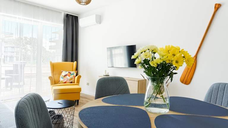 Navy Blue Dream - SPA - Basen - Parking ist eine komfortable Ferienunterkunft mit einer Vielzahl von Annehmlichkeiten, darunter eine rund um die Uhr besetzte Rezeption, kostenloses WLAN und einen kostenlosen Privatparkplatz. Die Unterkunft hat eine Terrasse mit Flussblick und bietet den Gästen die Möglichkeit, verschiedene Freizeitangebote zu nutzen.