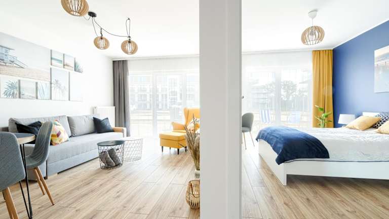 Die Ferienwohnung besteht aus einem Schlafzimmer, einem Wohnzimmer und einer voll ausgestatteten Küche mit Kühlschrank und Wasserkocher. Das Badezimmer ist mit einer Badewanne oder Dusche und einem Haartrockner ausgestattet. Handtücher und Bettwäsche werden bereitgestellt.