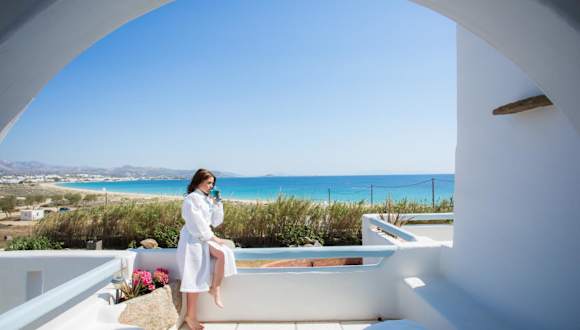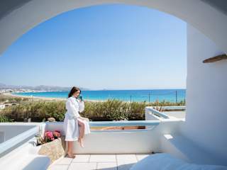 Das Naxian Riviera Exclusive Seafront Suites, Junior Suite liegt direkt am Strand in Agios Prokopios. Der schöne Strand Agios Prokopios ist nur 100 m entfernt und der Strand Agia Anna ist 1,6 km entfernt. In der Nähe des Hotels finden Sie auch den Strand Kleftonisia und das Schloss Naxos. Die berühmte Sehenswürdigkeit Portara und die Kirche Panagia Mirtidiotisa sind ebenfalls in der Nähe. Der Flughafen Naxos ist nur 4 km vom Hotel entfernt.