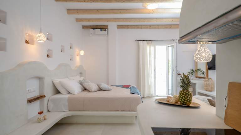 Die Zimmer in Naxos Nature Suites sind klimatisiert und verfügen über einen Kleiderschrank, eine Kaffeemaschine, einen Kühlschrank, eine Herdplatte, einen Safe, einen Flachbild-TV sowie ein eigenes Badezimmer mit Bidet. Jedes Zimmer hat einen Balkon mit Poolblick und kostenloses Wifi. Zudem sind die Zimmer mit Wasserkochern ausgestattet. Einige Zimmer bieten eine Veranda oder einen Patio und andere bestechen durch Meerblick. Bettwäsche und Handtücher sind ebenfalls vorhanden.