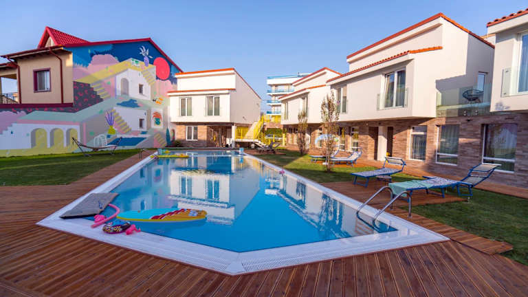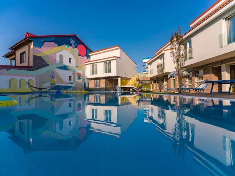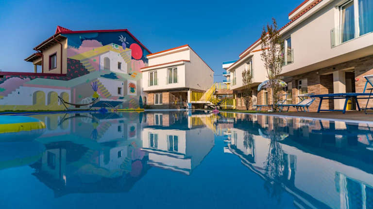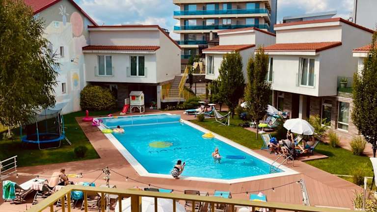 Das Nayino Resort Hotel liegt im Ferienort Mamaia-Nord, nur 100 m vom Strand Năvodari entfernt. Der internationale Flughafen Constanța ist in einer 15-minütigen Autofahrt erreichbar.