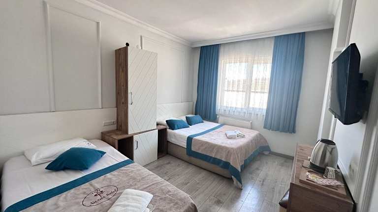 Das Nazar Hotel bietet moderne und elegante Zimmer, die mit Klimaanlage und kostenfreiem WLAN ausgestattet sind. Die Zimmer sind in sanften Erdtönen gehalten und verfügen über einen Kühlschrank und ein eigenes Bad. Hier können Sie sich nach einem langen Tag in der Stadt entspannen und erfrischen.