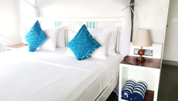 Die klimatisierten Zimmer im Neela's Beach Inn sind komfortabel und gemütlich eingerichtet und bieten alles, was Sie für einen angenehmen Aufenthalt benötigen. Jedes Zimmer verfügt über einen Schreibtisch, einen Sitzbereich und einen Kleiderständer. Das eigene Bad ist mit einer Dusche und kostenlosen Pflegeprodukten ausgestattet. Bettwäsche und Handtücher werden gestellt, damit Sie sich wie zu Hause fühlen können.
