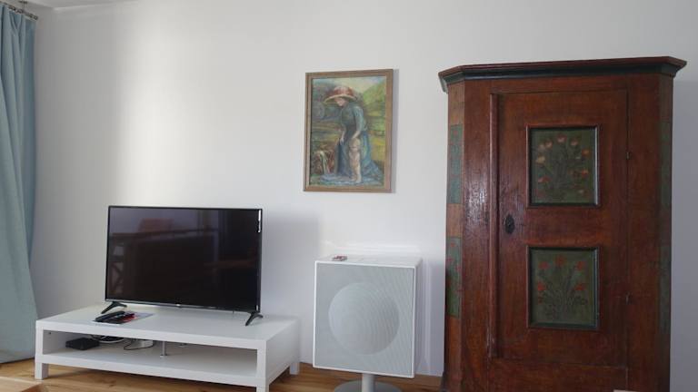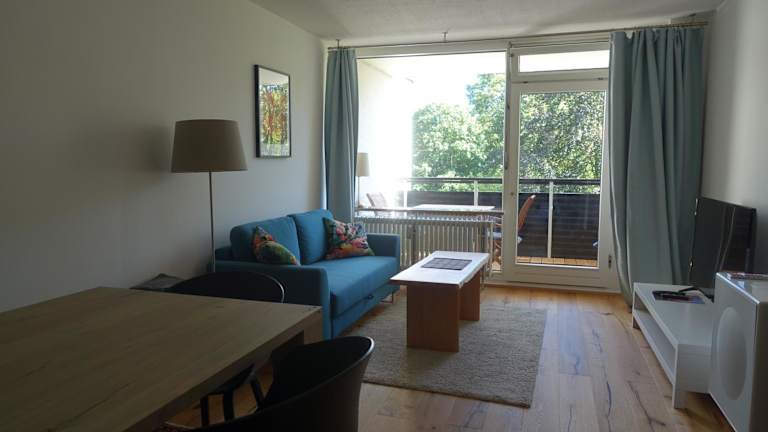 Die Ferienwohnung verfügt über ein Schlafzimmer, ein Wohnzimmer und eine voll ausgestattete Küche mit Kühlschrank und Kaffeemaschine. Das Badezimmer ist mit einer Dusche und einem Haartrockner ausgestattet. Handtücher und Bettwäsche werden bereitgestellt.