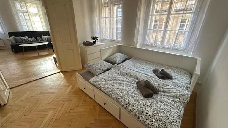 Die Unterkunft Nerudova Apartments hat im Zentrum von Prag gelegen. Sie befindet sich in der Nähe bekannter Sehenswürdigkeiten wie der Prager Burg (weniger als 300 m entfernt) und dem Veitsdom (700 m entfernt). In der Umgebung liegen interessante Orte wie die Karlsbrücke, das Prager Rathaus mit der astronomischen Uhr und der Altstädter Ring. Der nächstgelegene Flughafen, der Václav-Havel-Flughafen Prag, hat eine Distanz von 12 km zur Unterkunft.