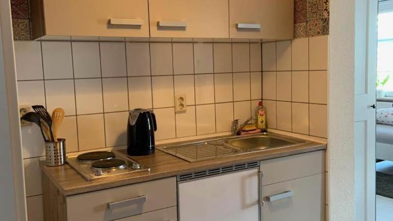Die Ferienwohnung ist mit einem gemütlichen Wohnzimmer, einer voll ausgestatteten Küche mit Kühlschrank und Ofen sowie einem Badezimmer ausgestattet. Handtücher und Bettwäsche werden bereitgestellt.